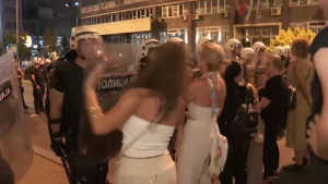 Trenutno, gradjani ne žele da se pomjere sa Bulevara Kralja Aleksandra iako žandarmerija traži da se raziđu. U jednom trenutku je jedan žandarm uzeo megafon i pozvao građane da se raziđu. To je ponovio nekoliko puta, Sa druge strane, jedan učesnik protesta je uzeo megafon i poručio građanima da se ne razilaze i da ih žandarmdrija ne smije dirati dok su mirni. Takođe, zahtjevaju od žandarmerije, da spuste štitiove, kako bi mogli da krenu ka Pionirskom parku.