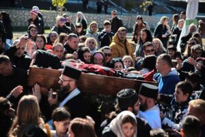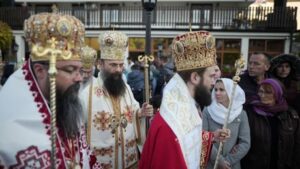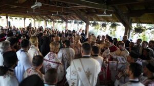 U 8.30 časova služena je arhijerejska Liturgija, nakon koje su mošti Svetog Jakova litijski prenijete kroz narod Božiji.