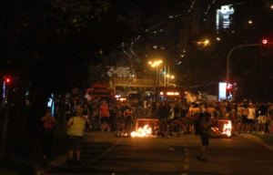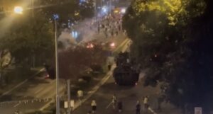 Pripadnici žandarmerije potisnuli su građane iz Cvijićeve ulice gde su razlupane prostorije SNS-a. U toku je intervencija žandarmerije, koja na oklopnim vozilima ide za građanima.