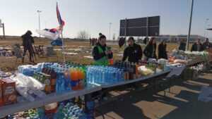 Nakon 15-minutne tišine na dve lokacije i šetnje u dve kolone, studenti, građani i bajkeri su stigli na naplatnu stanicu gde su ih sačekali studenti i građani sa bezalkoholnim pićem i hranom, pišu Južne vesti.