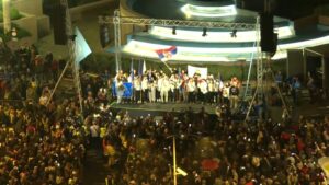 Veliki broj građana okupio se i kod zgrade NIS, kod raskrsnice ispred Mosta slobode, gde dočekuju studente i građane šetače.