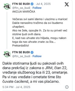 Kako je objavljeno na zvaničnom profilu studenata u blokadi Fakulteta tehničkih nauka u Novom Sadu akcija se sastoji od ulaska u policijske „marice“, odnosno nenasilno će tražiti da svi budu uhapšeni.