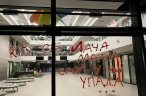 Studenti su na zgradi RTV-a ispisali čuveni lapsus predsednice Skupštine Ane Brnabić, kao i „izveštavajte iz Strazbura“.