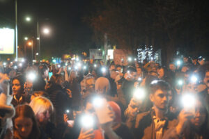 Ekipa Informera pokušala je da prođe Takovskom ulicom koju su blokirali studenti, ali su ih oni sprečili kada su ih studentski redari vratili iza njihovih linija.