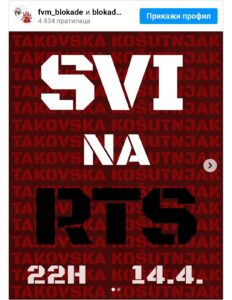 Studenti u blokadi pozvali su večeras na blokadu RTS-a u 22 časova.