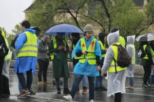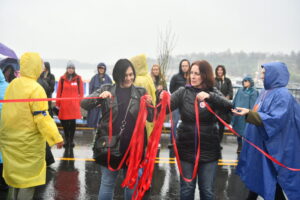 Na mostu je održan i performans solidarnosti prosvetnih radnika. Bile su poređane nastavnice koje su držale štapove.