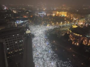 Masovni protest građana svih starosnih grupa i studenata pod nazivom “Naše pravo da znamo sve” okupio je večeras više hiljada ljudi ispred RTS-a stvarajući nezaboravnu sliku solidarnosti. Tokom 15 minuta tišine, koja je odjekivala gradom, učesnici su upalili bliceve, simbolično pokušavajući da ugase medijski mrak i odaju počast nastradalima u Novom Sadu.
