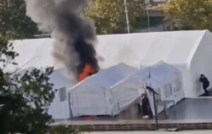 Kako se vidi na snimcima, gori veliki šator koji se nalazi između zgrade Skupštine i Pionirskom parku.