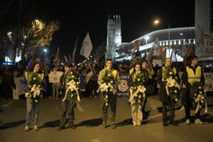 Beogradski i novosadski studenti zajedno odaju počast žrtvama koje je ubila nadstrešnica nedavno renovirane Željezničke stanice u Novom Sadu.
