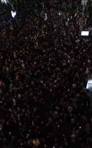 Veliki broj građana i studenata okupljen je ispred Rektorata beogradskog univerziteta nakon što je Uprava kriminalističke policije (UKP) upala u ovu zgradu. Snimak iz vazduha pokazuje koliko je građana došlo da se pobuni protiv ovakve akcije i podrži studente koji su ih pozvali.