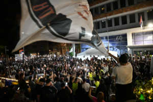 Plato ispred zgrade RTS-a je i dalje popunjen.