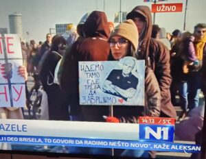 Na višečasovnoj blokadi mosta Gazela snimljen je i jedan transparent posvećen Obradoviću, što nije prvi put da tako nešto viđamo na studentskim protestima.