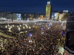 „Održan je i veliki skup u Beogradu. Policija kaže 28-29.000 ljudi. Izuzetno veliki skup. Ti ljudi su opoziciono orijentisani i uvek sam bio spreman da čujem kako misle i šta smatraju da je važno da se učini za našu zemlju. Verujem da mnogo veći broj ljudi misli drugačije. Zato moramo da slušamo jedni druge, da to bude neka vrsta vrednosti koju ćemo da pokažemo u budućnosti“.