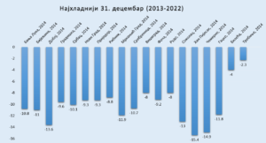 Najhladnije je bilo 2014. godine. Minimalna temperatura se spuštala ispod -15°S, a maksimalna temperatura nije prešla iznad -5°S u većini predjela. Jedino je na jugu bilo malo toplije. Na slici je prikazana najniža srednja dnevna temperatura izmerena 31. decembra u posljednjih deset godina (2013-2022) kao i godina pojave: