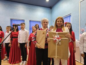 Naćičeva i direktor škole iz Suseka Tatjana Krstić razmijenili su poklone uz aplauze.