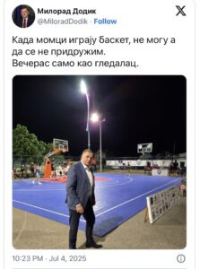 “Kada momci igraju basket, ne mogu a da se ne pridružim. Večeras samo kao gledalac.”