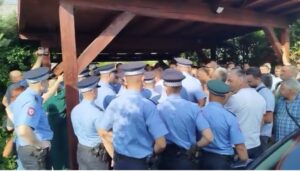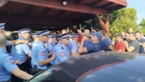 Oni su potom ušli u verbalni sukob sa pripadnicima policije koji obezbjeđuju mjesto događaja, da bi nakon toga došlo i do naguravanja s policijom.