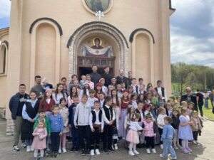 Nakon liturgije u porti hrama nastupili su članovi dječijeg folklornog ansambla folklorne sekcije Srpskog prosvjetnog i kulturnog društva „Prosvjeta“ Lopare.