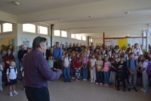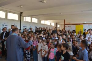 On je, zajedno sa saradnicima, učenicima prvih razreda podijelio prigodne poklone.
