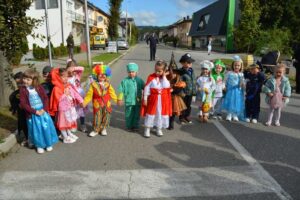 Mališani su u svojim kostimima crtali po glavnoj loparskoj ulici kroz koju je saobraćaj bio obustavljen dok je trajao priređeni program.