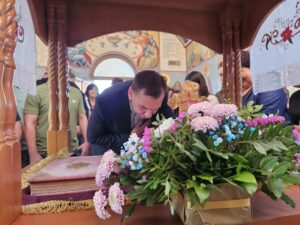 U porti mezgrajskog hrama, Gajić je sa mještanima razgovarao, njegujući duh tradicije koji se prenosi s koljena na koljeno.