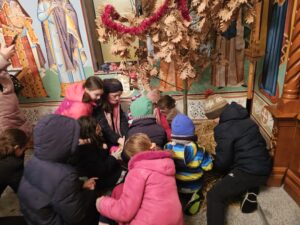Nalaganju badnjaka u porti mezgrajskog hrama Svetog arhiđakona Stefana prisustvovali su mještani ovog rubnog sela u opštini Ugljevik.