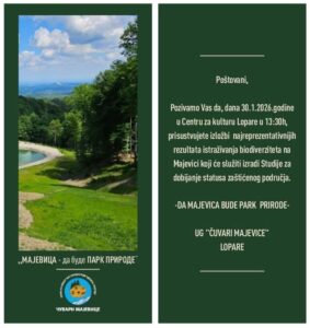 U Centru za kulturu Lopare će biti predstavljeni rezultati istraživanja biodiverziteta područja Majevice na izložbi, pod nazivom „Majevica – da bude park prirode“, koju organizuje Udruženje građana „Čuvari Majevice“ iz Lopara 30. januara 2026. godine u 13:30 časova.