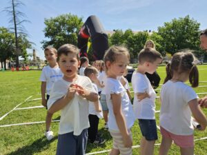 Mališani su se takmičili u nizu uzbudljivih disciplina: štafeta 4×25 metara, skok u dalj, mini kros, bacanje vortexa na daljinu, trčanje na 50 metara.