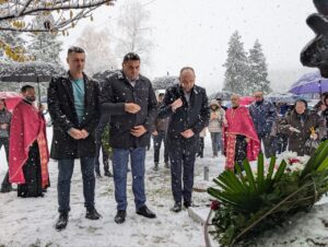 Nakon služenja parastosa, vijenci su položeni na spomenik posvećen radnicima ovog preduzeća koji su dali svoje živote za stvaranje Republike Srpske.