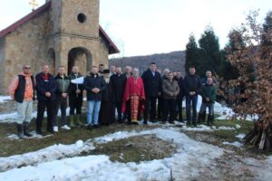 U porti manastira Svetog proroka Jeremije u Rožnju na Majevici je, po tradiciji prvog dana pravoslavne Nove godine, naložen badnjak, a prethodno su u svetinji monasi Jelisej i Vartolomej služili večernju molitvu.