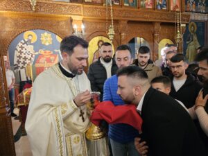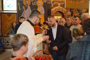Protojerej Aleksandar Tešič, pozdravio je vjernike radosnim pozdravom Hristos Vaskrse, Vaistinu Vaskrse!