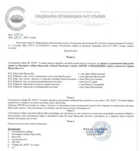 Sindikalni odbor ZP „RiTE“ Ugljevik nakon održanog sastanka jednoglasno je odlučio da zajedno sa radnicima Preduzeća traži od Nadzornog odbora Preduzeća i Vlade Republike Srpske hitnu i neodložnu sjednu kompletne Uprave.