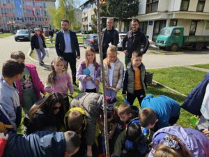 Vrijedni mališani zasadili su bejlis, maćuhice i japanske trešnje, unoseći dodatnu svježinu i ljepotu u gradski ambijent.