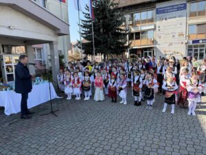 Lazarice je na gradskom trgu ispred opštinske uprave dočekao načelnik Dragan Gajić sa najbližim saradnicima i zahvalio najmlađim čuvarima tradicije na posjeti.