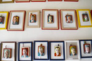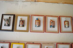 Posebno su interesantni trodimenzionalni portreti njegovih komšija i njemu interesantnih ličnosti izrađenih u drvetu.