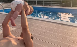 On je pokazao svog malenog sina od tek deset meseci, a na ovoj preslatkoj slici ga drži u naručju, u rukama podignutim iznad sebe.