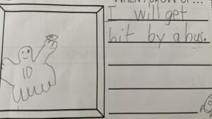 Pored jezivog odgovora, dečak je nacrtao crtež koji ni roditelji nisu umeli da objasne. Neki korisnici pretpostavljaju da prikazuje trenutak udara autobusom, dok drugi misle da se radi o fudbalskoj utakmici. Roditelji obećavaju da će „pokušati da saznaju više od umetnika lično“.